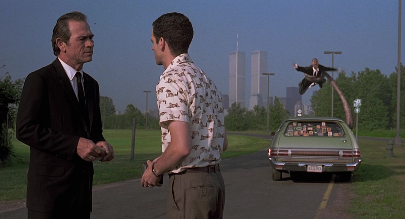 And at the center of it all stand Will Smith and Tommy Lee Jones, whose snappy verbal exchanges and star power alone would have been worth the price of a ticket - even without ILM's exemplary FX work or Rick Baker's Oscar-winning makeup designs to back them up. Jones is so dry, and Smith so brash and impulsive, that they complement each other perfectly; even the climax at the New York State Pavillion makes pitch-perfect note of this, with Jay and Kay each solving the movie's central crisis in typical characteristic fashion.